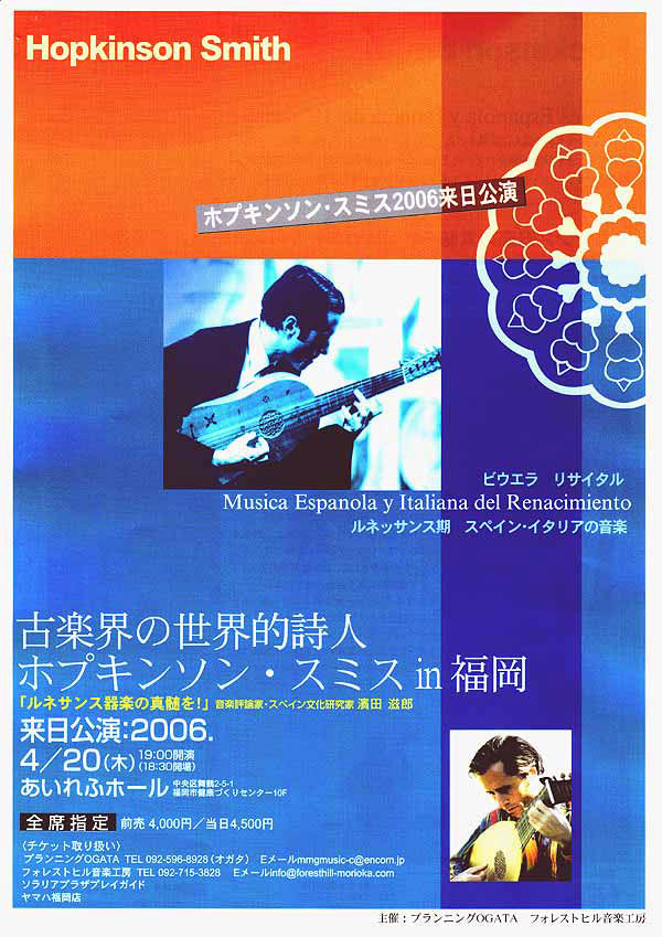 Vihuela を携えての来日だそうです。国内何箇所かで公演があるようですが、私がよくお世話になっている博多の FORESTHILL