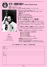 L.Brouwer」です。第1楽章はクラシックのスタイル、ソナタ形式です。そるの有名な練習曲の旋律をテーマに使っています。第2楽章はタレガの作品からモチーフを引用していますが、音楽のスタイルは現代のものです。最終楽章はロンド。ブローウェルのように力強い音楽です。合奏団員も予想以上にたくさんの方が応募くださり、そろそろ締め切りのようです。 |