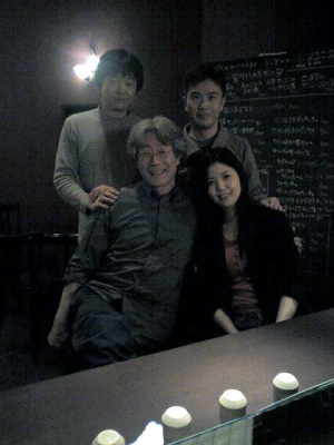 夕方に広島について、レッスン。夜は友達と夕食。丁度、徳武君が弾いていると言うので近くのスペインレストランへ乱入。タイミングよく、徳武君の演奏中でした。ディアンスのタンゴやアルハンブラの思いで、などを聞かせてくれました。徳武君は相変わらずの切れ味ある演奏で楽しませてくれました。しばらくの間スペイン料理を楽しんで、今度は更に友達が増えて「シェーナ SCENA」というお店へ移動。永谷佳子さんという若くて素敵なソムリエールのいらっしゃるお店でワインと料理を堪能しました。残念ながら永谷ソムリエールとのツーショットはピンボケのため、友人達との写 真です。後ろは徳武君、中村君、そして私の隣はピアニストの千恵ちゃんです。明日は広島のラファエル教会で、川本ギター教室の発表会(六時半〜 )。ゲスト演奏しますので、お近くの方是非聞きに入らして下さい。