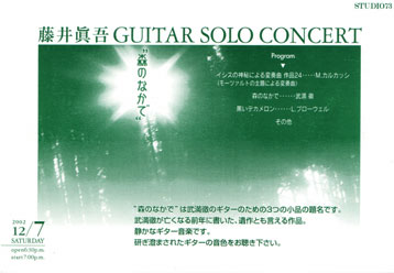 今回開催される国内各地での「藤井眞吾ギターリサイタル~森のなかで」のひとつとして、再び