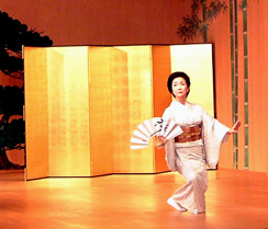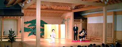 ・・・とても楽しかったです、それが今日の「時を遊ぶ」でのゲスト演奏を終えての率直な感想です。何しろこういう日本の伝統的な舞台に上がるのが初めてでした。10年くらい前に、京都の歌舞練場で演奏したことはありますが(主催/ローム・ミュージックファンデーション)、その時はあくまでもクラシックの演奏会(現代音楽)でしたから演奏会そのものは普段と変わらない雰囲気でした。でも今回は会の雰囲気も違いますし、周りは着物を着た女性ばかり。それに私たちまで、舞台に上がるには「白足袋」を着用しなければならず、タキシードに白足袋というかなり風変わりないでたちでありましたが、久し振りの上床さんとの共演、そして会を主宰された若柳富久陽さんが素敵でした。写真でご覧頂くような舞台です、如何ですか? |