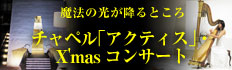 予約申込●チャペル「アクティス」コンサート係 tel.075-451-0489 料 金●コンサートのみ = ¥500 コンサート&カクテル= ¥1500 コンサート&デザート= ¥1500