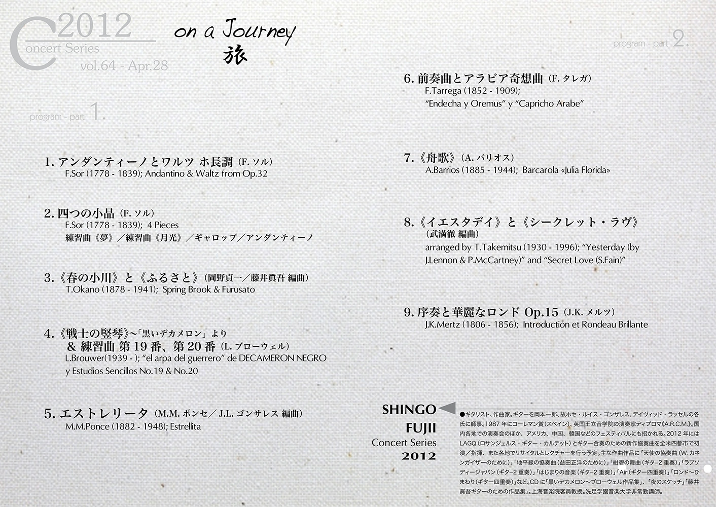 3月と4月はアメリカツアーでした。大掛かりなツアーでしたが、充実して、また楽しい仕事でした。本日はそれにまつわるお話をご紹介しながら演奏をして行きたいと思います。
