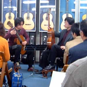 大阪 Fana でコンサートと公開レッスンを行いました(企画・主催/藤井眞吾)。コンサートは1時間ほどのプログラムで、ソル、ブローウェル、ペルナンブコの作品を演奏しました。公開レッスンでは三人の受講生が演奏。音楽大学に合格したばかりの高校生・今村君、コンクールでファイナリストの経験もある松永さん、大学ギタークラブ出身の粟津君、と個々に違った演奏でしたが、皆勉強熱心で、楽しい公開レッスンとなりました。聴講生の方々も非常に熱心な眼差しを注いでくれ、充実した一日でした。