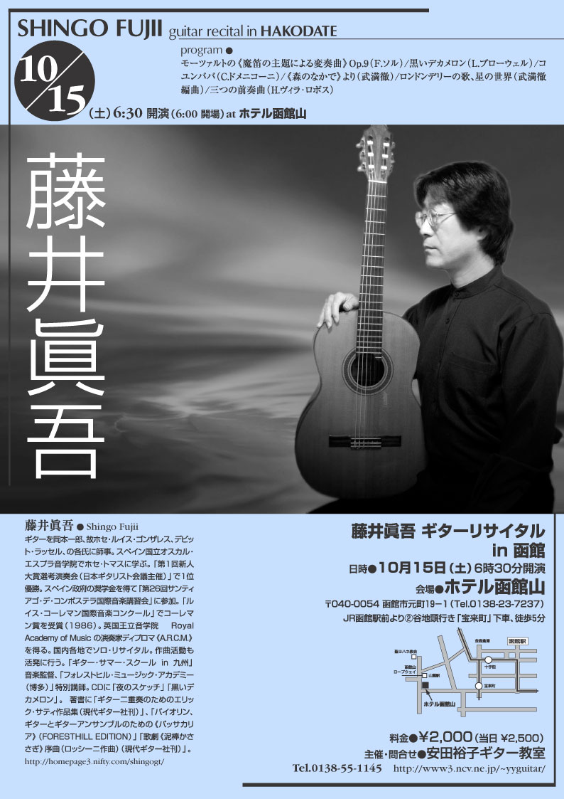 久し振りに函館での演奏会です。会場となるホテル函館山は美しい函館の夜景も堪能できる最高のロケーションです。10月の函館は一年の中でももっとも爽やかな季節ですから、この演奏会が今から楽しみです。