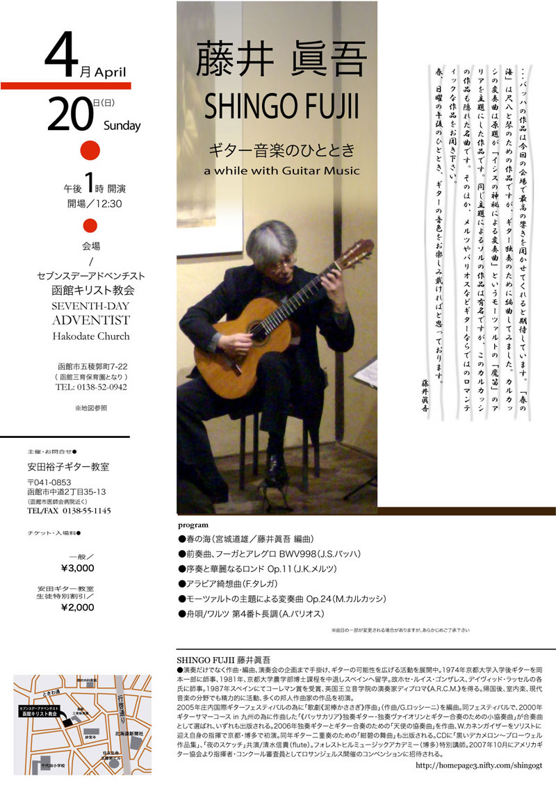 一般/ ¥3,000 (安田ギター教室 生徒特別割引/ ¥2,000)