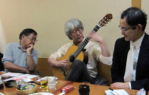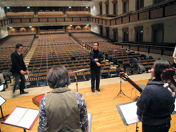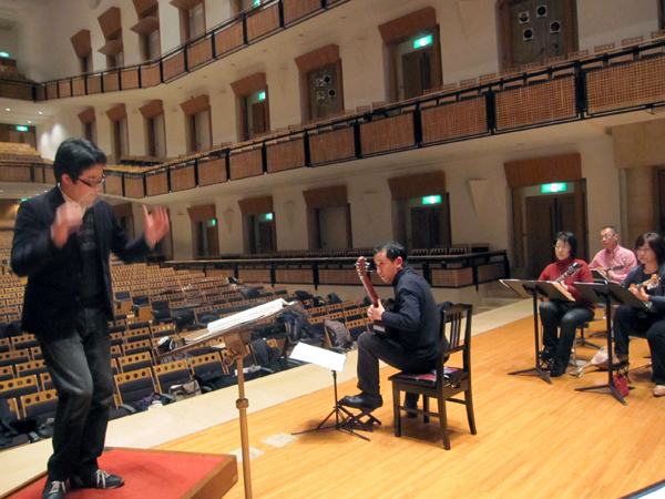 この曲は益田正洋さんのために作曲したものですが、2009年に益田正洋さんとアンサンブル・モニカによって初演され、2010年には福田進一さんとフィオレンティーノによって関西初演されました。今回演奏して下さる「新所沢マンドリンクラブ」は1982年に第一回定期演奏会を開催している歴史ある団体で、今回は益田さんのギターの生徒でもあり、初演時にはギター奏者として演奏に参加していた冨山敬さんが指揮者を務めてくれます。今日朝早く京都を出発して、新所沢での練習を聞かせていただきましたが、皆さんとてもよく練習されていて、また指揮者の富山さんは再演に向けて、非常な熱の入れよう、また団員の皆さんはとても明るく、この作品を楽しんで下さっている雰囲気が伝わり、来年の演奏が本当に楽しみです。