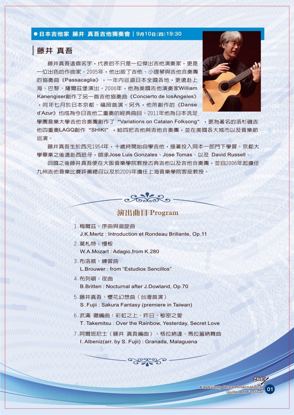 台湾の高雄市で、9月10日に「高雄海洋国際ギターフェスティバル」の一環としてリサイタルをいたします。台湾は2008年以来の久しぶりの訪問です。今回はブリテンやブローウェルなど現代の作品が中心のプログラムですが、自作の「Sakura Fantasy」も演奏する予定です。台北の懐かしい友人達も会えますし、台北ではアンサンブルを含んだマスタークラスをしますので、とても楽しみです。