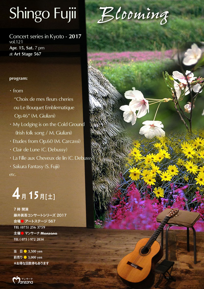 日本列島を桜前線がせっせと北上している季節です。桜ばかりではありません、すみれ、アザレア、菜の花、ナズナ、タンポポ、チューリップ、そして北海道ではスズランが咲き始めます。固かった蕾がふくらみ、そして花ひらくとき、道ばたに咲いた小さな花でも、生命感に溢れ、私達を勇気づけ和ませてくれます。そんなギターの小品集をお聞き下さい。