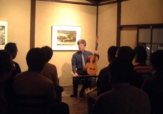 ~お彼岸が間近だと言うのに寒さの厳しい日々が続きました。今から思うと前回2月のほうが遥かに温かく春のような日差しの中コンサートをしたのでしたが、そんな寒さにも関わらず会場には満席の客様が詰めかけて下さり、心より感謝しております。今回はルネッサンス、バロック、そして秋透さんの新作、最後にはライヒのミニマル音楽と、まさに盛り沢山のないようで演奏は大変でしたが、始めて聴く音楽にも最後まで皆さんが熱心に聴いて下さいました。(藤井眞吾/2007年3月19日