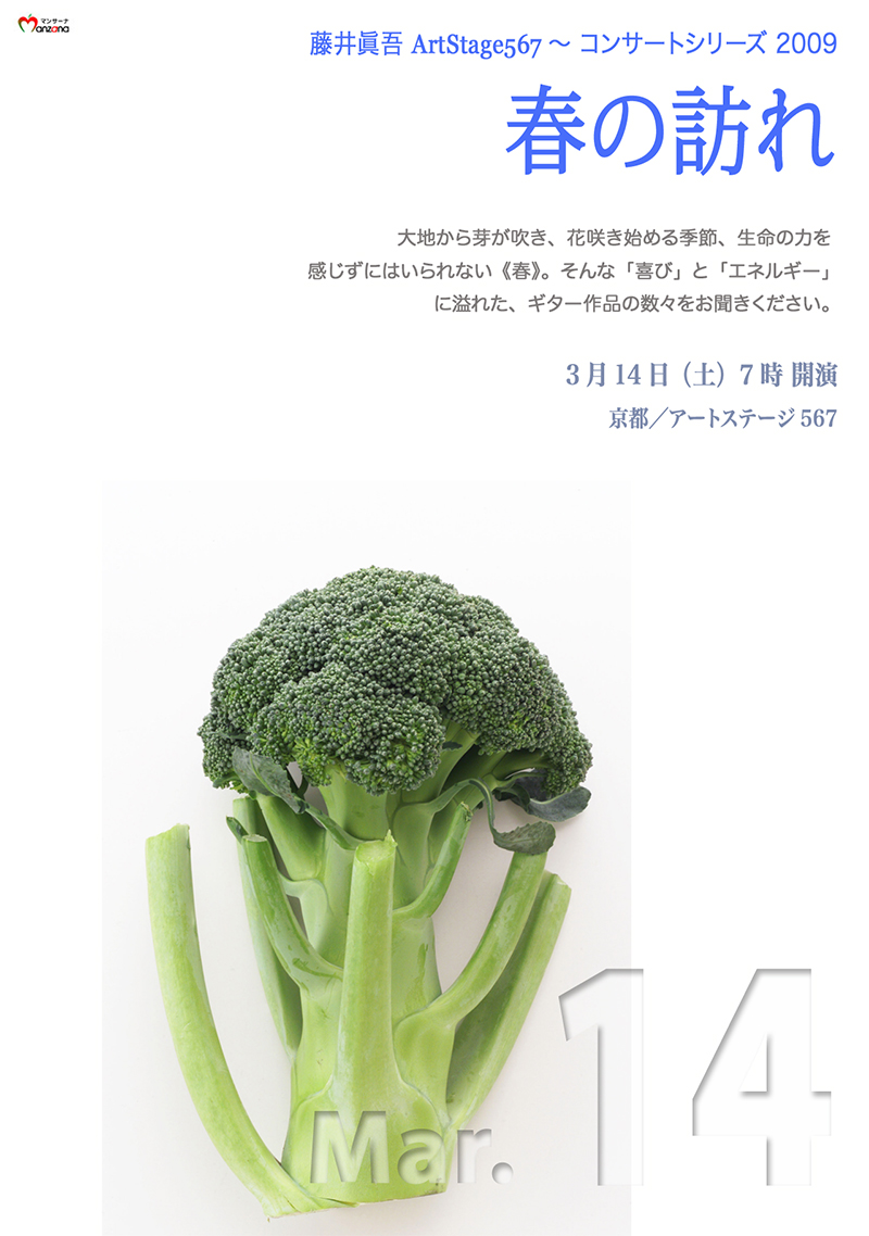 会 場アートステージ567 京都市中央区夷川通烏丸西入巴町 9-2 「コロナ堂」2F Tel. 075-256-3759 *地下鉄「丸太町」6番出口より徒歩1分 入場料 ¥3,500 主 催 マンサーナ Manzana Tel.075-972-2834 予 約 インターネットからのチケット予約