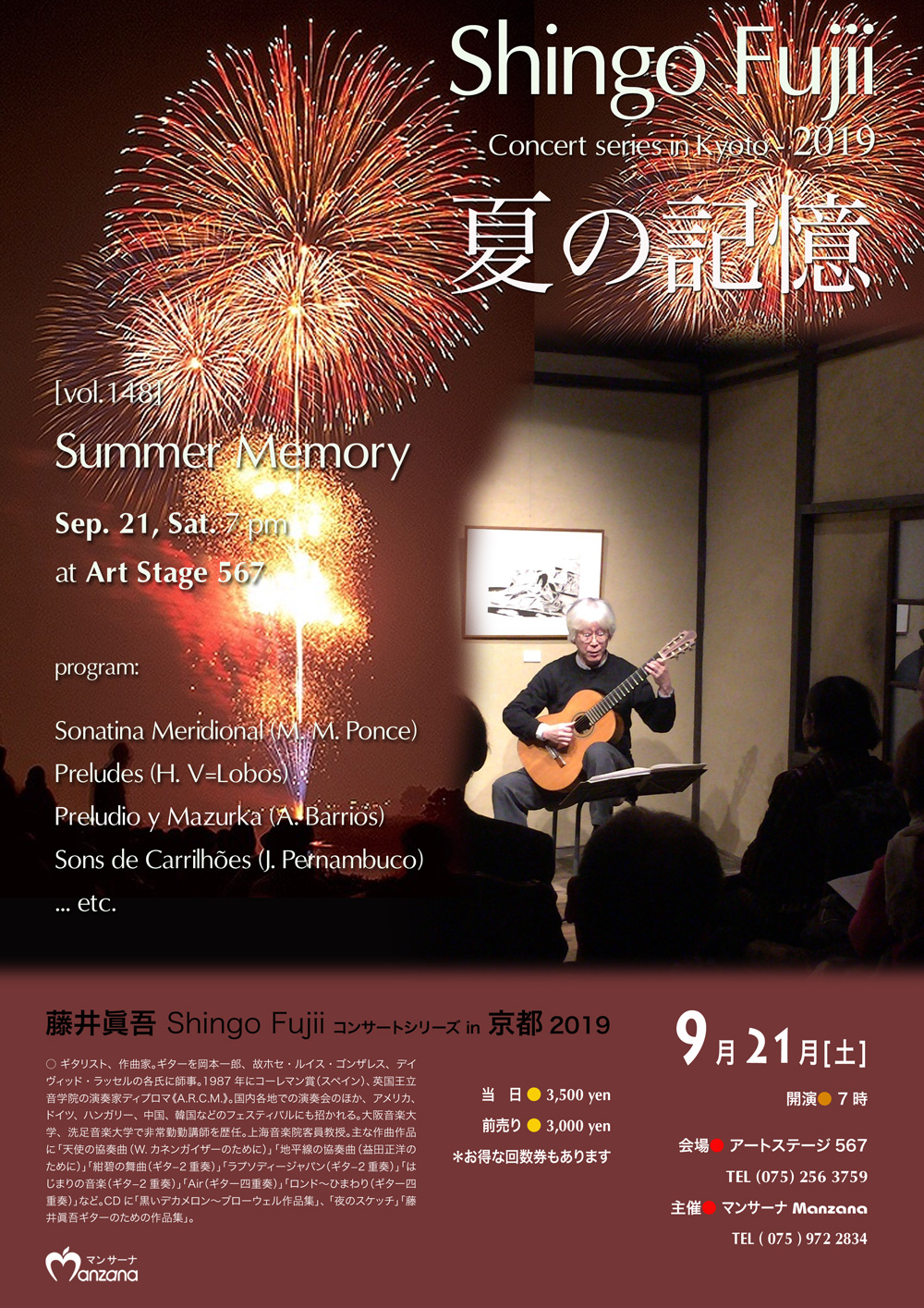 ご希望の方はマンサーナのサイトからチケットを予約される際に、あるいは既にチケットを予約された方はマンサーナ宛メールにて、「楽譜希望」と書いて、お知らせ下さい。尚、当日受付ではご予約分しか楽譜を用意いたしませんので、必ずご予約頂きますようお願いいたします。 |