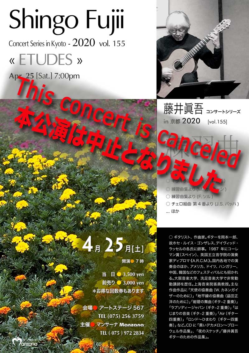 ●program(予定):練習曲集 Op.60より(M.カルカッシ):練習曲集より(F.ソル):練習曲集より(H.V=ロボス):キラキラ星による練習曲(藤井眞吾)