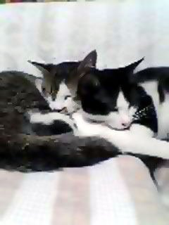 ところでこの写真は最近我が家に居候を始めた猫、二匹(決して、つのださんと波多野さんではありません)。と言っても野良猫ではなく、きっとどこかで飼われていた、お行儀の良い猫です。数日前の朝女房が買い物に行くと、にゃあにゃあいいながら女房の車に乗ってきたというのですが・・・。まあ今は「迷い猫」のポスターを貼りだして、飼い主を探しているのです。一体いつまで我が家にいることになるのか。
