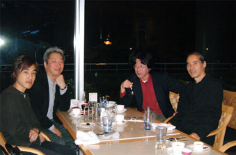 前日の11月2日は大津市のホテルでリハーサル。演奏会を聴きに駆けつけてくれた福田進一君は4日には韓国に旅立ち。前夜はみんなで夕食を・・・、なぜか6日に東京デビューリサイタルを控えた松尾君も一緒。(なんとホテルで彼も猛レッスンを受けていたのでした)荘村さんとの練習はいつも楽しい・・・。抜群の初見力で、出来上がったばかりの編曲をもっていっても、すぐにその場で生き生きした音楽を創り出す。毎回アイデアが尽きない。そして本番にむけた真摯な姿勢! 今回の二重奏は本当に楽しかったです。演奏しているとき、僕にとっては荘村さんがまるで武満さんの化身のように見えて、音楽を自在に歌い上げ、僕はそれを観賞しているような気分になったり、さあ次はどうするんだろうと、わくわくしたり・・・、本当にこんな楽しい二重奏はありませんでした。僕達がステージの上に立った時、きっと天国からやって来た武満さんも一緒に歌っていたような気がします。 |