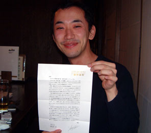 実は十数年前、僕が初めて長崎で演奏会をした時、その翌日に小学校6年生であった彼のレッスンをしたことがある。そしてその翌年(1990年)に彼は東京のコンクールで優勝し、それに際して僕が書き送ったという手紙を、何と持参してくれた! その手紙を見てやっと思いだしたけれど、言われるまで、そして見せられるまで、そんな手紙を書いたことすら忘れていた。嬉しかった。