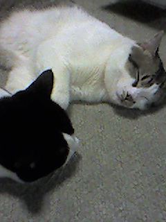 書き込みが携帯からできる、というのでやってみました。うちのデブ猫の昼寝姿です。 |