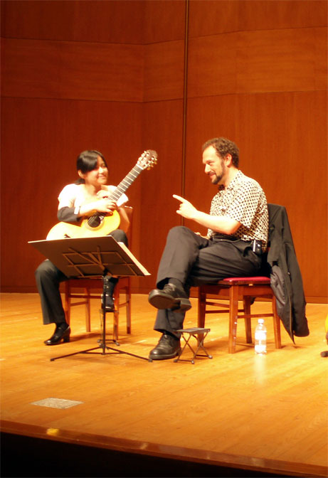 京都公演では関西在住の若いギタリスト達(大阪音楽大学での私の教え子達)が手伝ってくれました。 ユニークなホームページをつくっているのが「ポンタ」こと、西尾純平君。「ポンタのお話」はフィクションとノンフィクションの混在した、なかなか面白いお話で、《天使の協奏曲》から「公開レッスン受講」の話まで満載です。