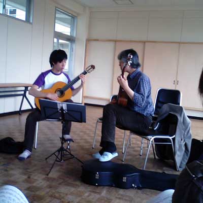 2月に引き続き、富川ギター教室主催による「公開レッスン」です。今回は7月の発表会に向けてアンサンブルを中心としたレッスンですが、来月発売となる拙著「はじまりの音楽(ギター二重奏)」のレッスンもあります。そのほかに独奏、二重奏(ロシアの思いで)、また三重奏では私の作品「River