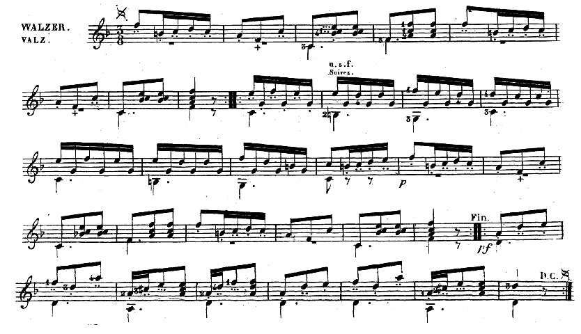 第1曲は「ワルツ」なのですが、ここまでのワルツとは少し雰囲気が違います。最初の八分音符「ファ」が短くならないように、たっぷりと「八分音符」の音価を保つとこの旋律のニュアンスが出てきます。中間部のアルペジオでは旋律をはっきりと出すように。