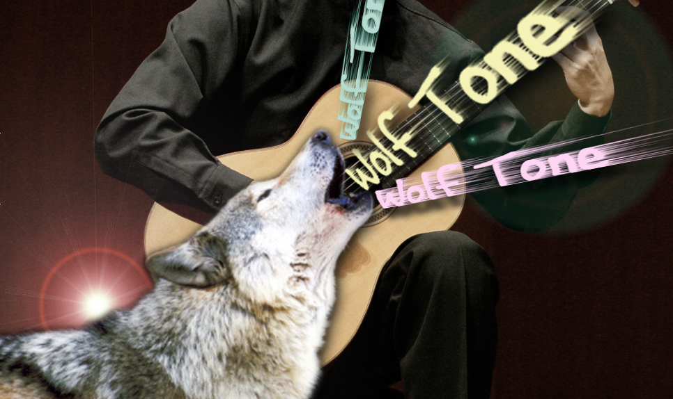 固有振動数の話をしましたので、もう少し話題を広げてみましょう。全ての剛体は固有の振動数を持っているわけですから、当然ギターもそれを持っているわけです。ギターの固有振動数を決定する要素の多くは、ボディーの作りや大きさ、表面板の厚さ、力木の状態などでしょう。では弦がギター本体の固有振動数と同じ音で振動しようとした時どうなるかと言うと、それは「相殺」しあって、あまり良い鳴り方をしなくなります。これを「ウルフトーン」といいます。あなたのギターの第6弦で、3フレットの「ソ」そして4フレットの「ソ#」、5フレットの「ラ」位までゆっくりと弾いて弦の振動状態を観察して下さい。大抵は弦はふくよかに振動するのですが、ウルフトーンでは振動が急に小さくなり、音の余韻があまりありません。「ソ#」くらいだと良いのですが、「ソ」とか「ラ」にウルフトーンが来ていると、これは困ったことになります。