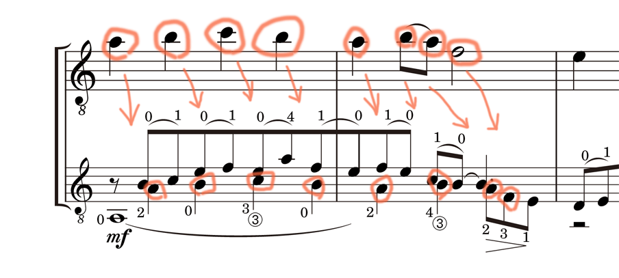 この曲での 1st guitar はアンサンブルとしての難しさ以外には、技術的にさほど課題はないと思いましたので、付録(apendix)として「中級者用