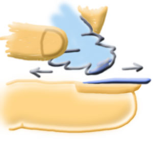 ここからが仕上げです。「仕上げの1」は先ほどの「エナメル・リムーバー」をティッシュペーパーにしみ込ませて、人工爪の付け根の方(指先と反対方向)を擦ります。するとピンポン球のセルロイドが溶けてきて、爪と人工爪のつなぎ部分が綺麗なグラデーションとなり、ラスゲアードなどでも引っ掛かることがありません。(図)