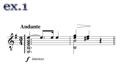 Solo guitar, exhibiting this melody, leads the guitar orchestra
