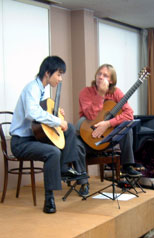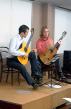 10月8日、とうとう David の2004年ツアーがスタートしました。大阪でのリサイタルは素晴らしい演奏でした。演奏のあらゆる所に、成熟の香りとでも言うべき「円熟」の味わいを見せていました。最初のテデスコ(悪魔の綺想曲)ではまさに巨匠の演奏と言うべき内容で、この作品が技巧的にだけではなく表現としても相当に難しい曲であるということをすっかり忘れさせてしまいました。続くバッハの2曲のコラールは演奏者自らがその安らぎの音楽を楽しんでいるかのように演奏していました。マンホンの「バスクの調べ」はかなり昔のCDにも収録している曲ですが、作品のもつ即興的な音楽の流れがより一層自然に聞かれたように思います。と言ってもこの曲、相当の難曲、尋常なテクニックではありません。前半の最後はアルゼンチンの音楽、有名なラミレスの「アルフォンシーナと海」そしてファルーの「兵士の歌」。この2曲に関してはあとで触れましょう。
