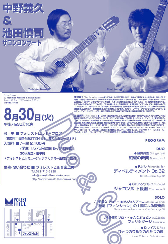 中野義久&池田慎司サロンコンサート 8月30日(火)7:30 福岡県福岡市フォレストヒル