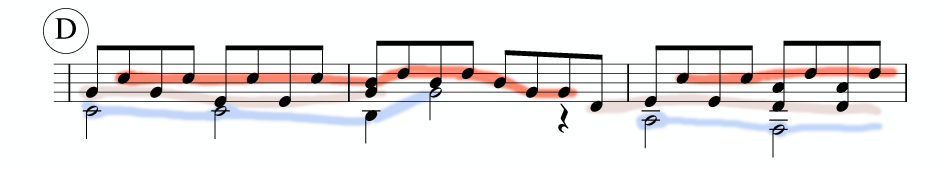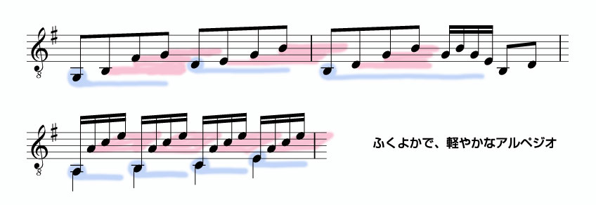 Guitar は殆ど常にそれを二重にやっているわけです。ですから「和音を弾く」技術や、二声部を弾くという音楽的な難しさがこのパートにはあります。