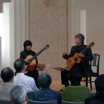 この日のコンサートは、なんと1時開演。終演も3時だったので、残った時間が勿体無いと、会場を安田ギター教室に移して、明日からの個人レッスンに先駆けて、二重奏と個人レッスン一人の「公開レッスン」を急遽行いました。二重奏はソルの「三つの小嬉遊曲