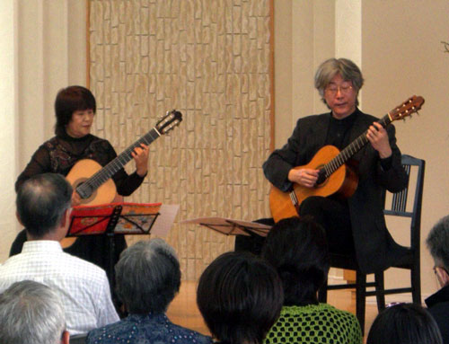 休憩のあと、第2部が始まる前には、このコンサートの企画・主催者でもある、ギタリストの安田裕子先生と二重奏を追加演奏しました。曲はソルの「嬉遊曲