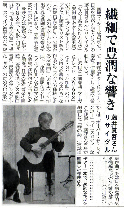 Op.38」。簡潔ながらも華やかで充実した作品です。今回はバッハからソル、コストにメルツ、宮城道雄や武満編のビートルズまで、様々な音楽を聴いていただきました。会場の響きもとても気持ち良かったです。