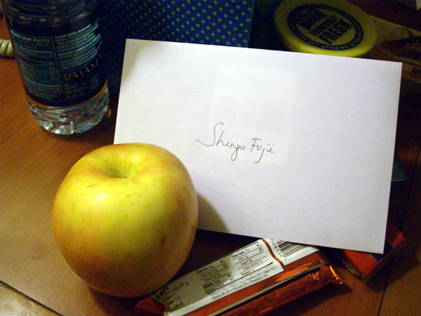 差し入れのリンゴとメッセージ